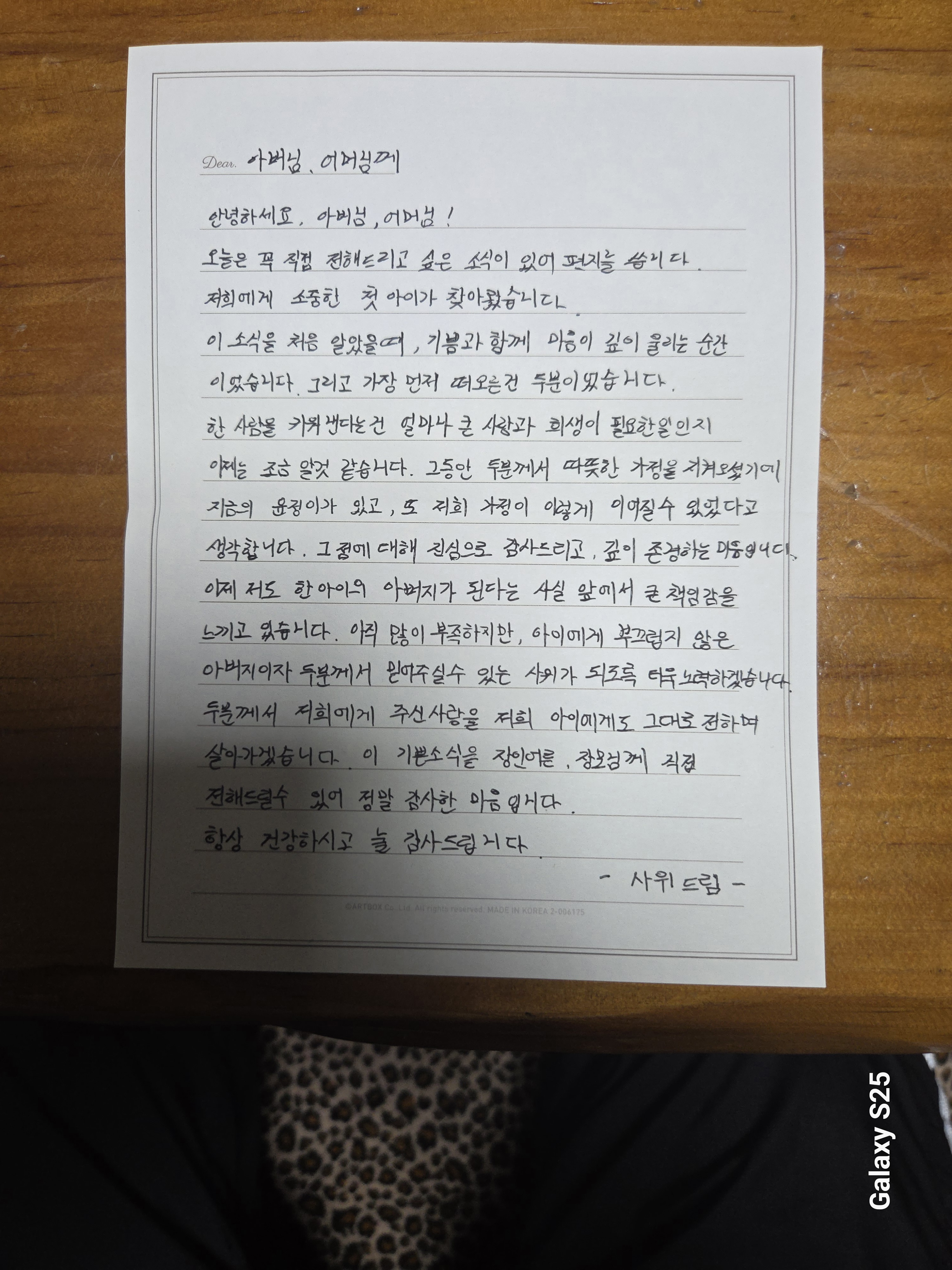 뜬금없이 사위가 저희부부에게 축사의 편지를